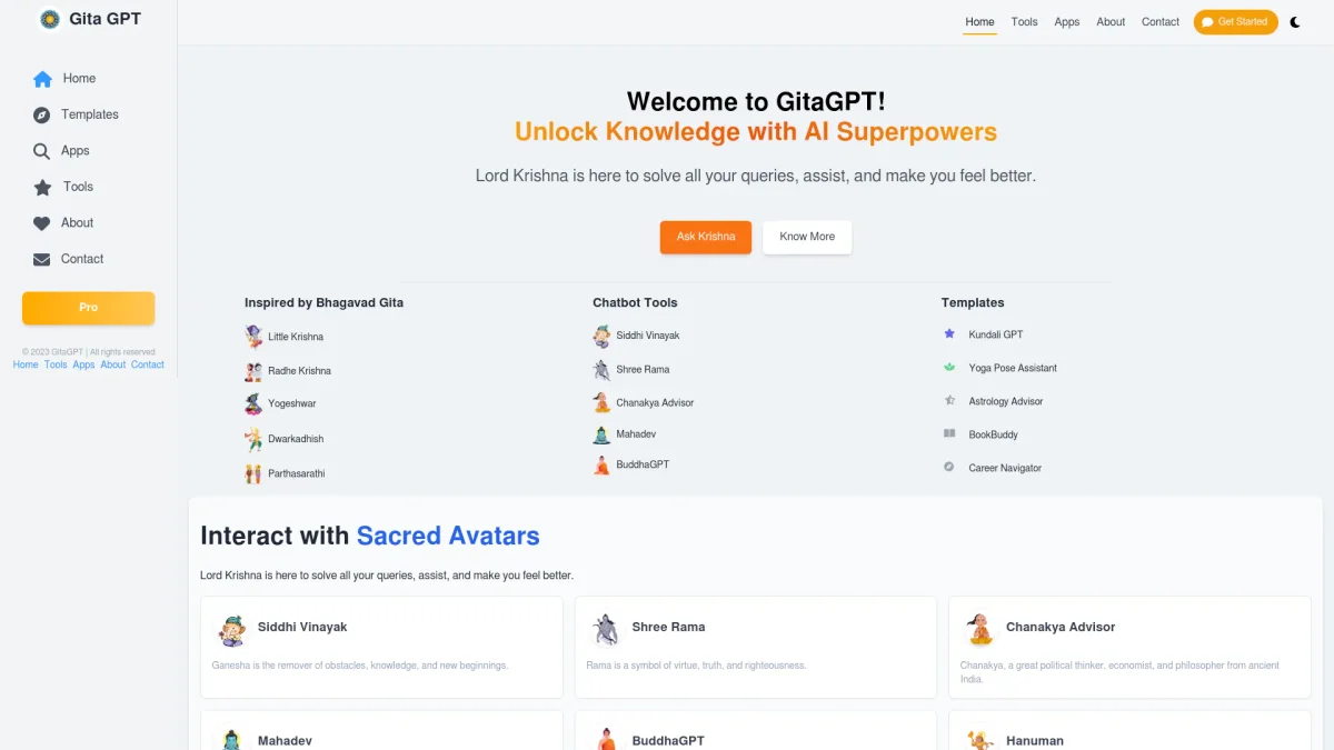 Gita GPT connects you with Krishna for personalized spiritual guidance, using voice, video, and insights grounded in ancient wisdom across 22 languages.