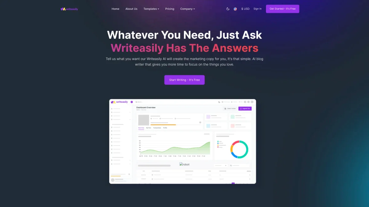 Writeasily streamlines your writing process with AI-powered tools, helping you create clear, impactful content quickly and efficiently.