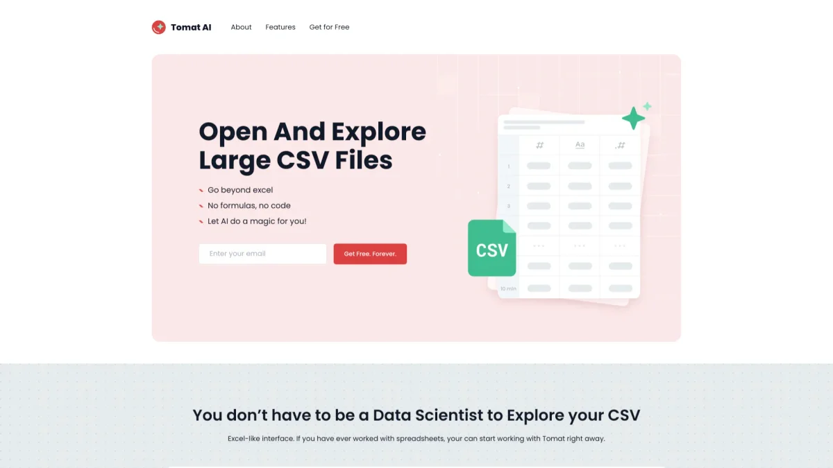 TomatAI simplifies data analysis by automating processes for Excel and CSV files, enabling users to clean, transform, and analyze data effortlessly and efficiently.