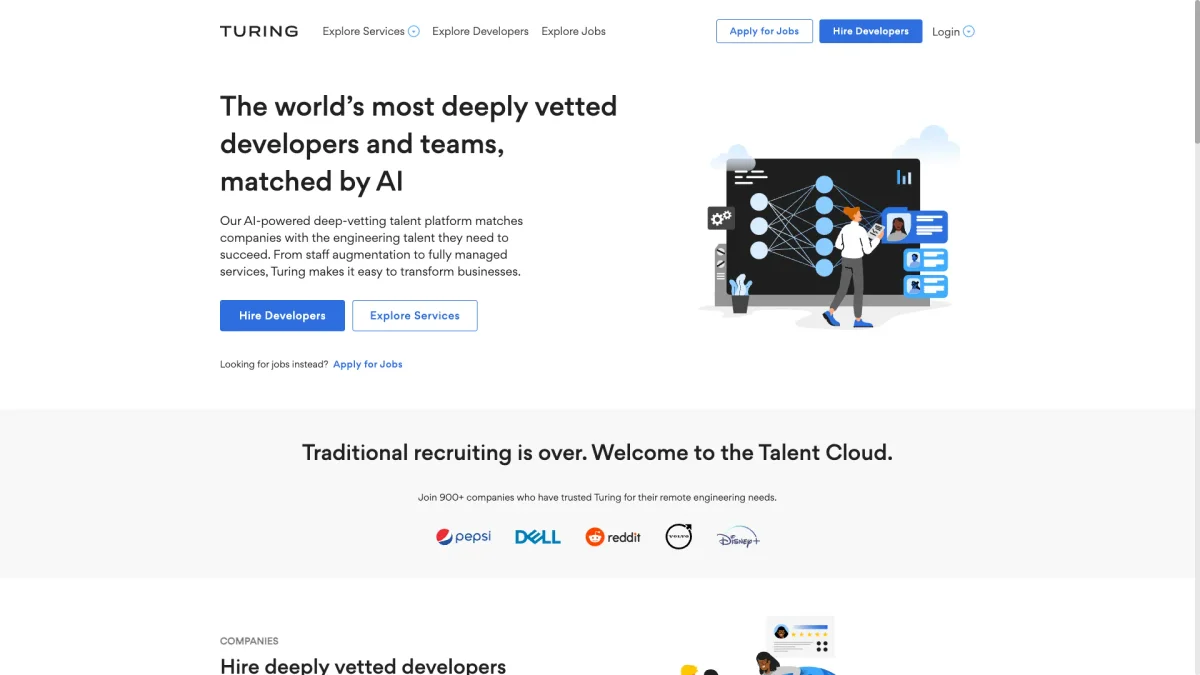 Turing transforms AI research into practical outcomes by providing advanced datasets, agile AI systems, and top-tier talent to bridge the gap between development and real-world applications.