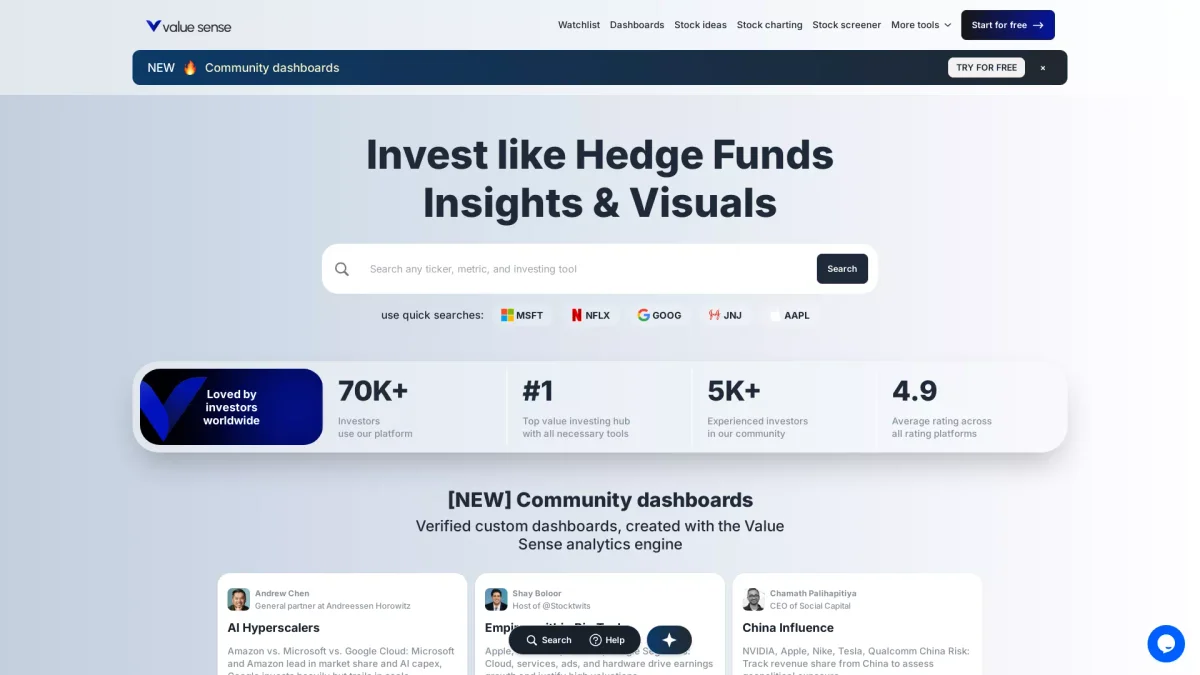 Value Sense provides advanced tools for identifying undervalued stocks and tracking investment portfolios, all powered by AI-driven insights and analytics.