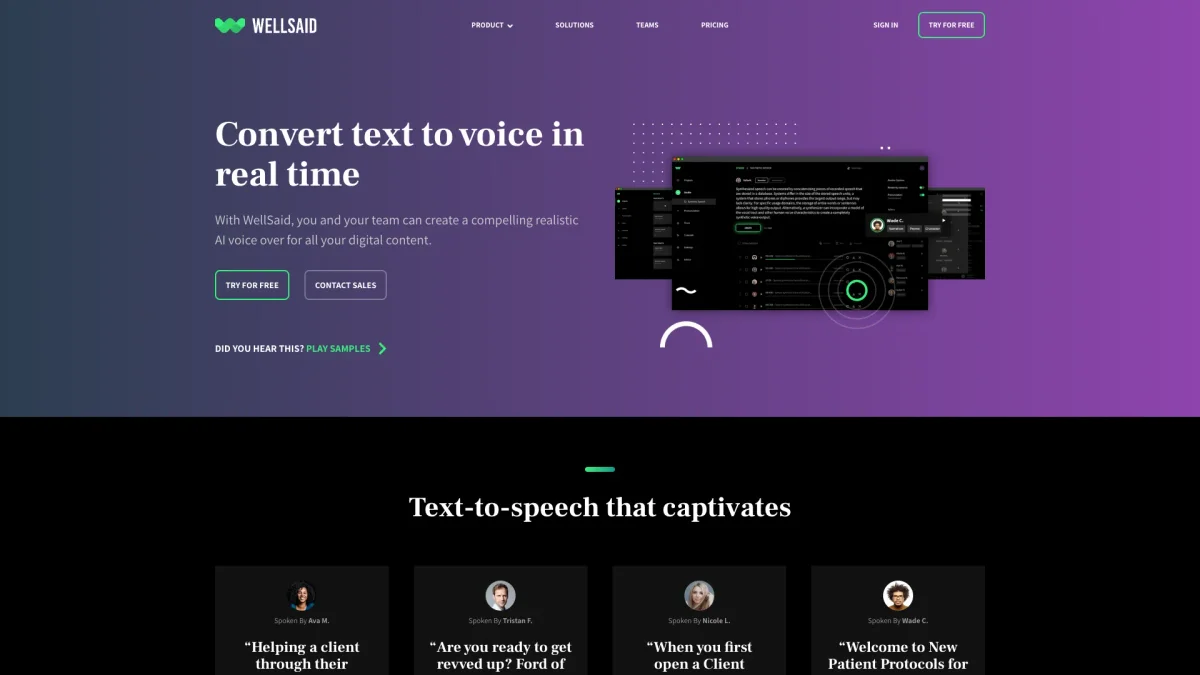 WellSaid is an advanced AI voice generator that delivers human-quality voiceovers, enabling quick and efficient content creation for various industries.