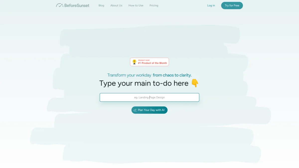 BeforeSunset AI helps you plan, prioritize, and stay focused on your daily tasks effortlessly, ensuring you achieve your goals efficiently.