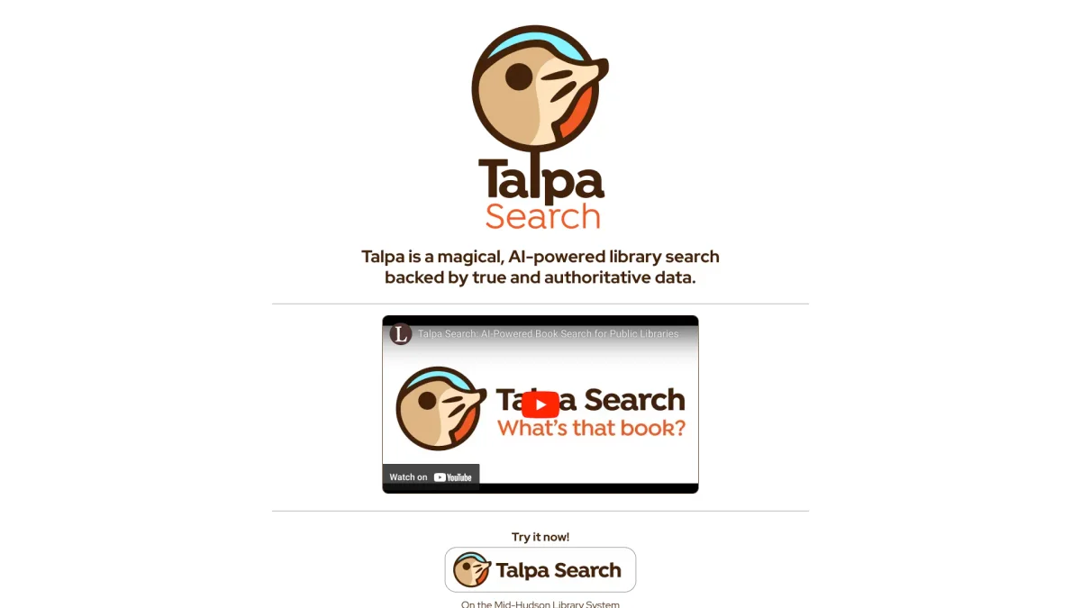 Talpa Search simplifies discovering books, movies, and music tailored to your interests with intelligent search capabilities designed for avid readers and entertainment lovers.