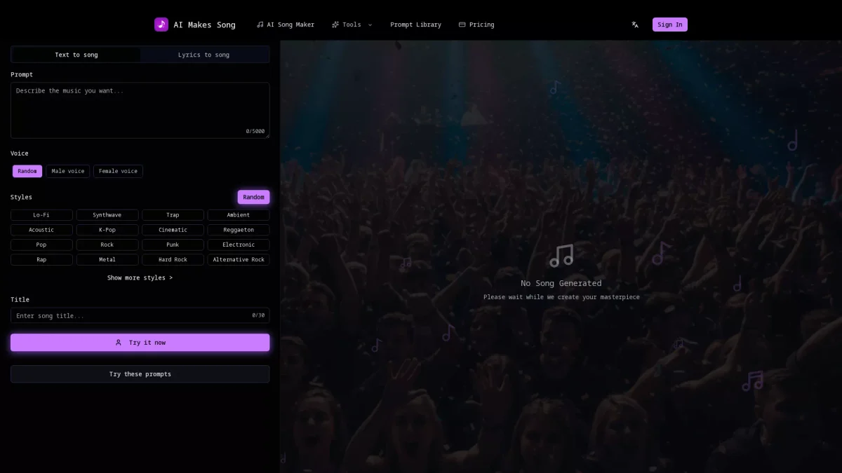 AIMakesSong is an innovative AI music generator that allows users to effortlessly create unique tracks, overcoming writer's block and sparking creativity for all music creators.