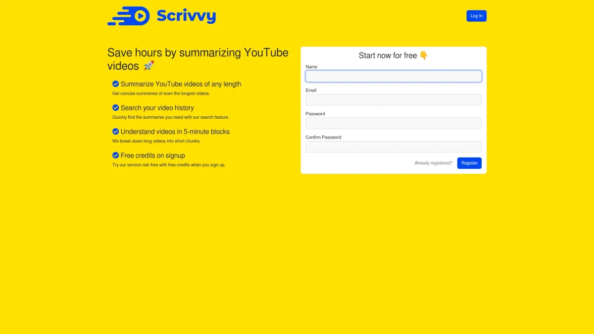 Scrivvy provides swift, AI-driven summaries for YouTube videos and podcasts, helping users focus on essential content without wasting time.