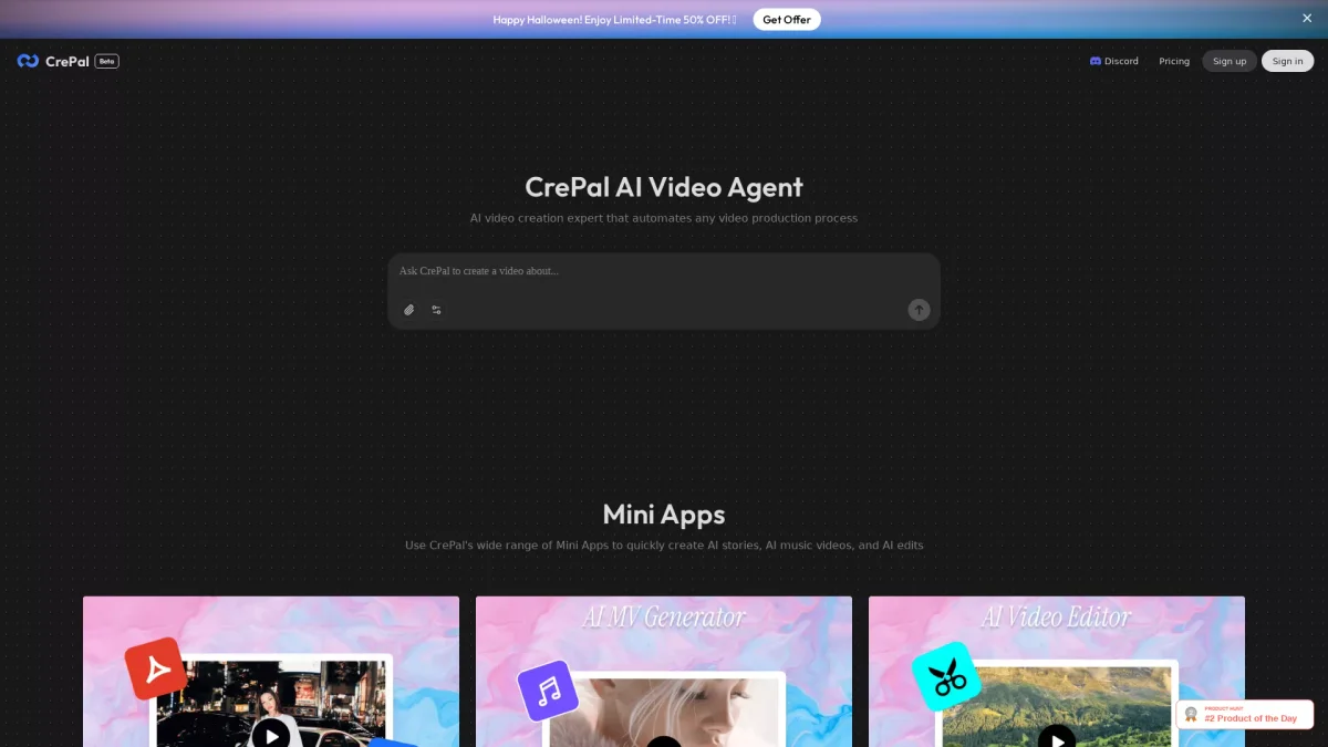 Transform your ideas into stunning videos effortlessly with CrePal's all-in-one AI video creation platform, designed for content creators and businesses alike.