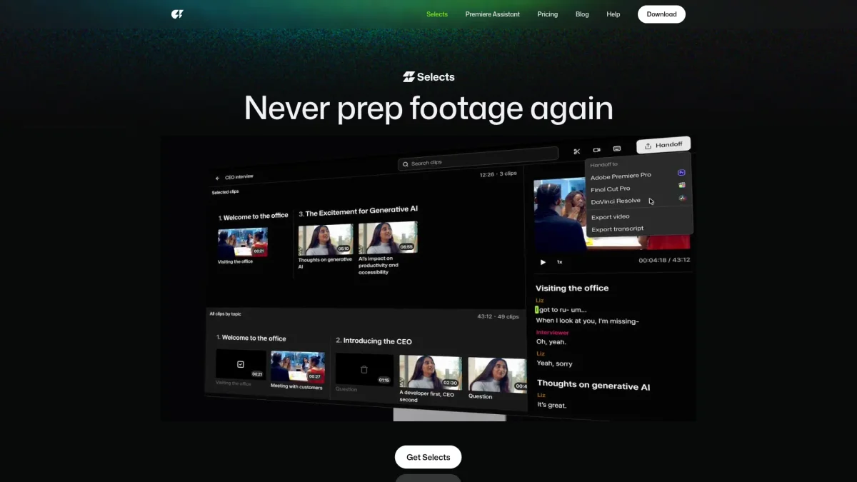 Selects by Cutback revolutionizes video editing, transforming hours of preparation into minutes so creators can focus on storytelling and creativity.