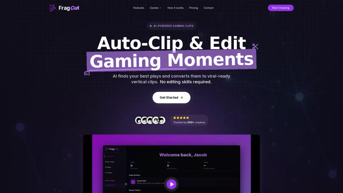 Generate and share epic gaming clips 10x faster with FragCut's AI technology, designed specifically for content creators and gamers to enhance their social media presence.