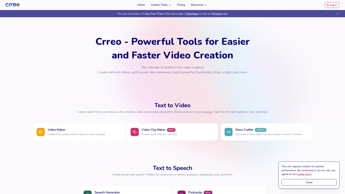 Crreo.ai enables users to create stunning videos effortlessly, automating scripts, visuals, and voiceovers to bring ideas to life in minutes.