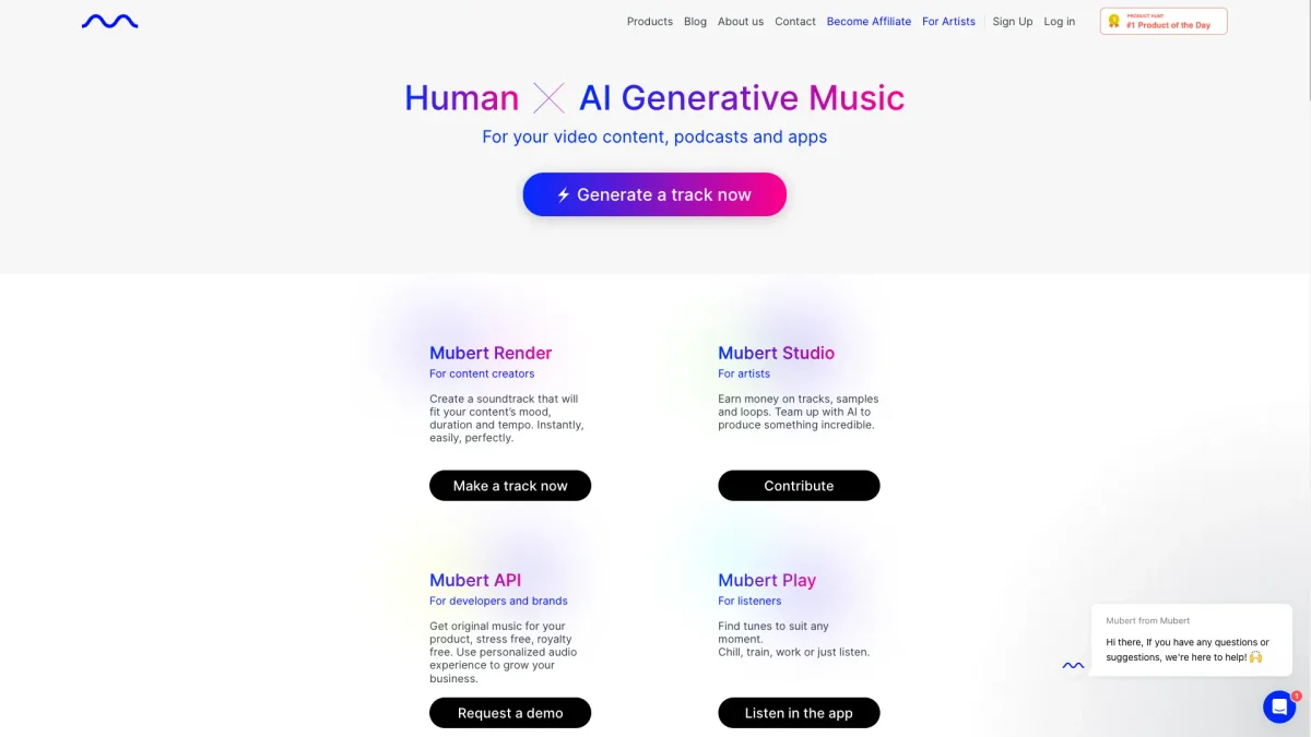 Mubert provides an innovative platform for generating unique, royalty-free music tailored to various moods, genres, and themes, perfect for content creators.