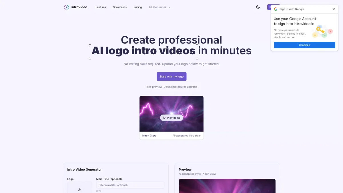 Transform your logo into a professional animated intro video effortlessly with IntroVideo's AI-powered generator. No editing skills required, just upload and go!
