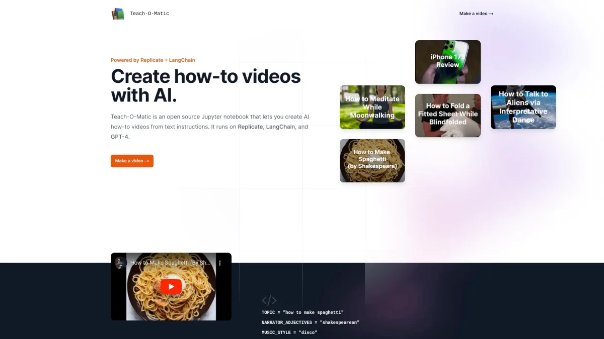 Teach-O-Matic transforms text instructions into engaging AI how-to videos, leveraging advanced technology without requiring any development environment.